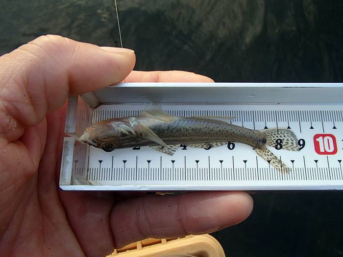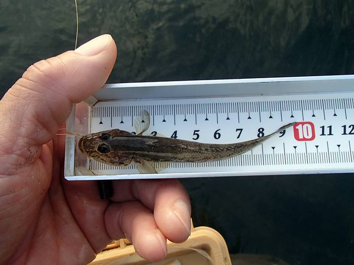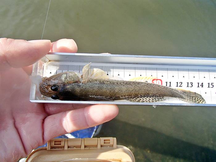 どうみても小ハゼのアタリ方なんだけど、ボウズ逃れせにゃ〜ならんので三度目の正直で本日の一匹目。