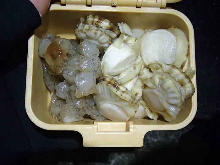 餌は芝エビとボイルベビーホタテの海鮮丼コンビ。