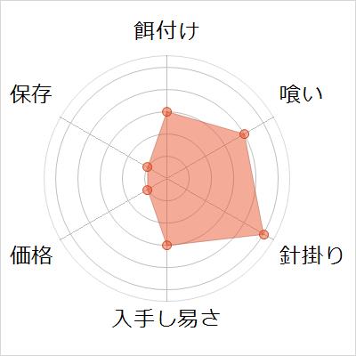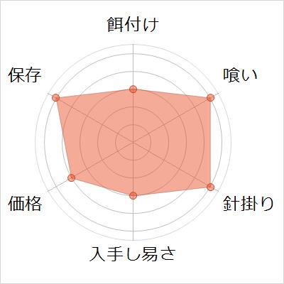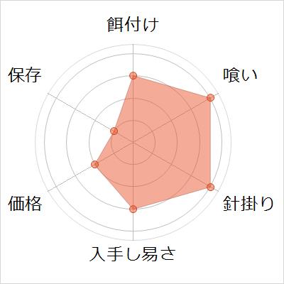 2022年現在において、オッサンが試した事のあるハゼ釣りエサの性能をレーダーチャートにしてみました。