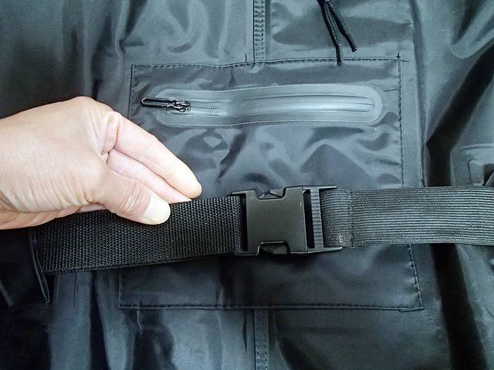 この腰ベルトは、万が一転んだ時に水が侵入するのを防いてくれるのでウェーダーには必須です。