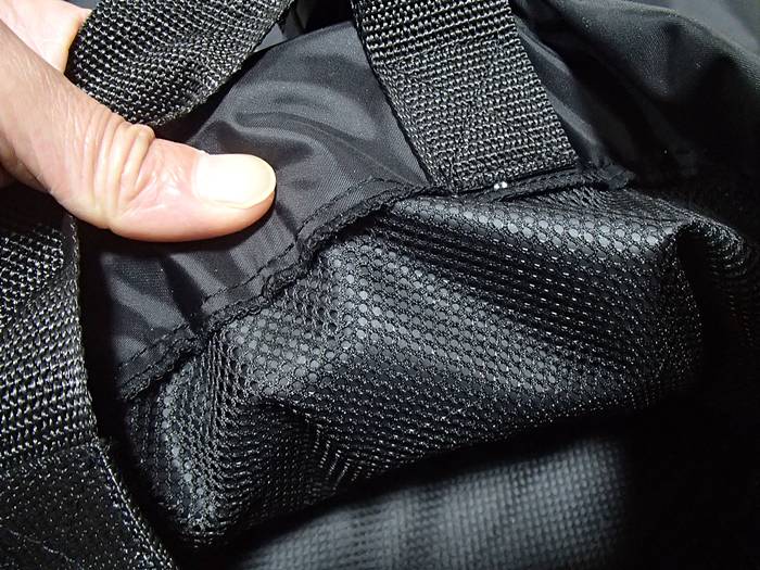 裏側はメッシュ生地だけれど、この手のインナーは蒸れるんだよな〜。まぁ、無いよりはマシだけれども…