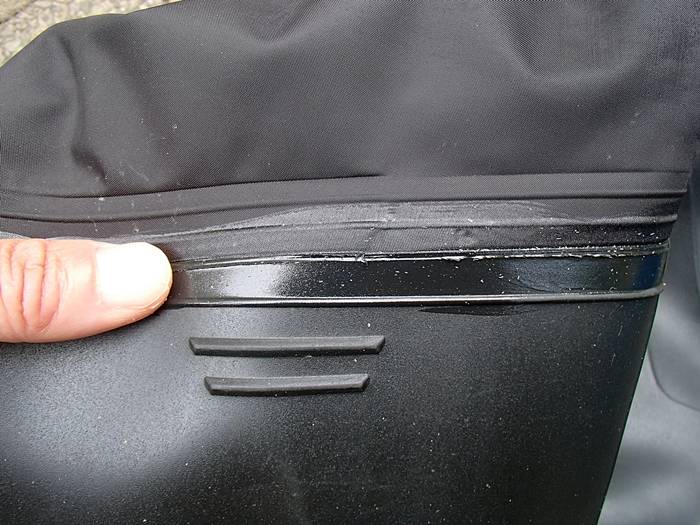 決壊ヶ所は片足の長靴と防水生地のつなぎ目部。