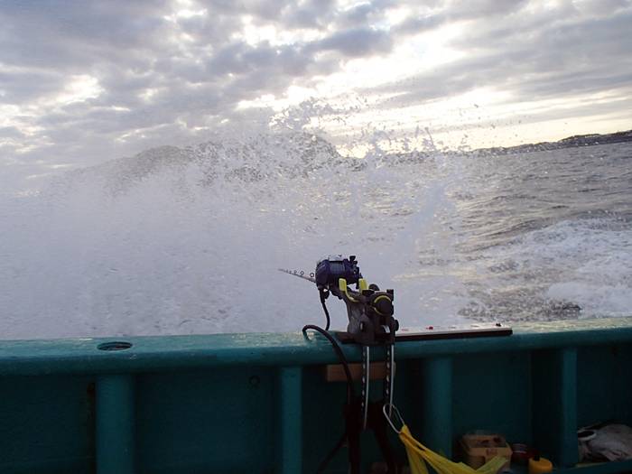 大型船ならしのげると思うが、いかんせん小船なもんで波に揺られ放題。