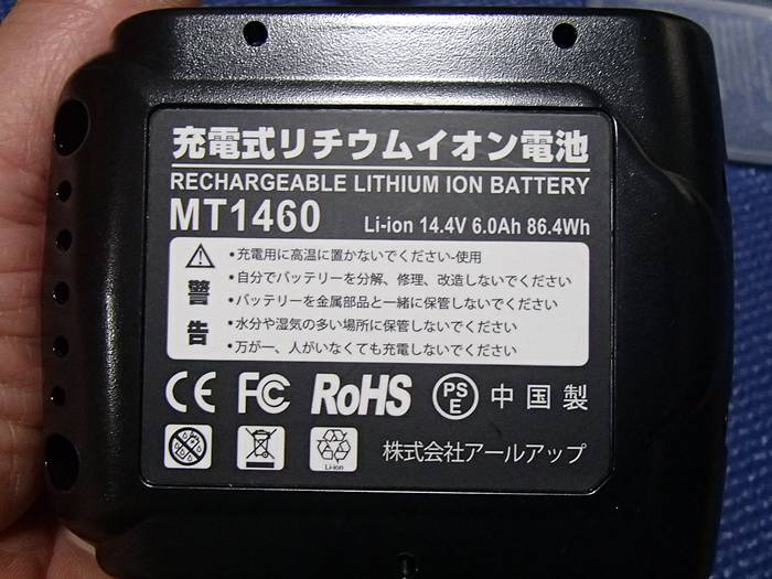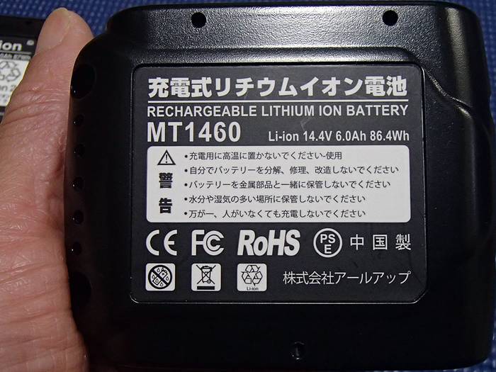 マキ◯純正の14.4V-6.0Ahバッテリーは、ひとつで一万数千円のビックリ価格だが、某大陸製のバッタモンは数千円で買えたりする。