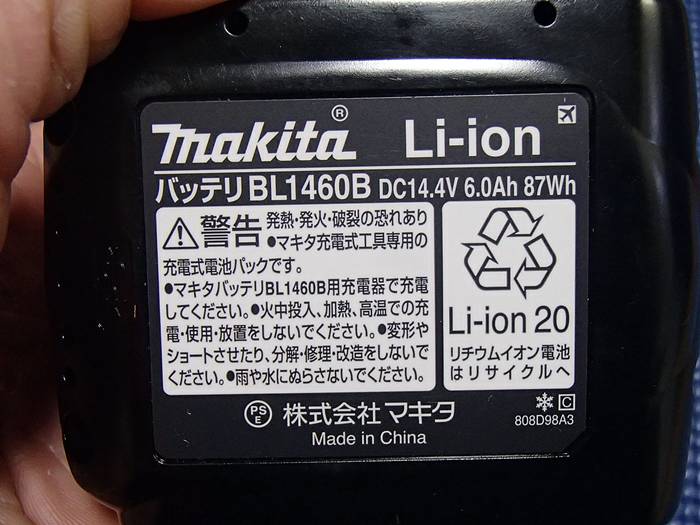 ただし、14.4Vのバッテリーでも6.0Ahだから、容量は十分だと思う。