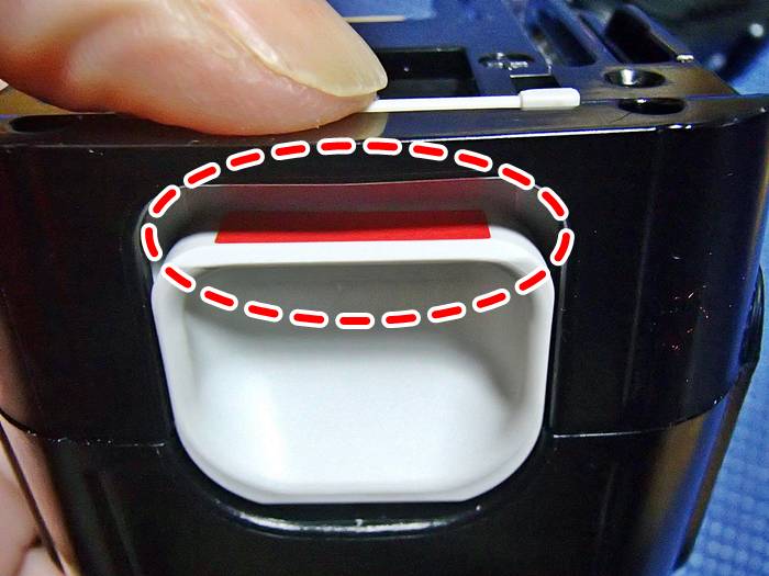 純正には、脱着部のツメに赤色のテープがあります。