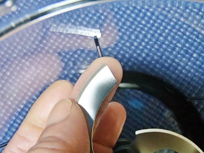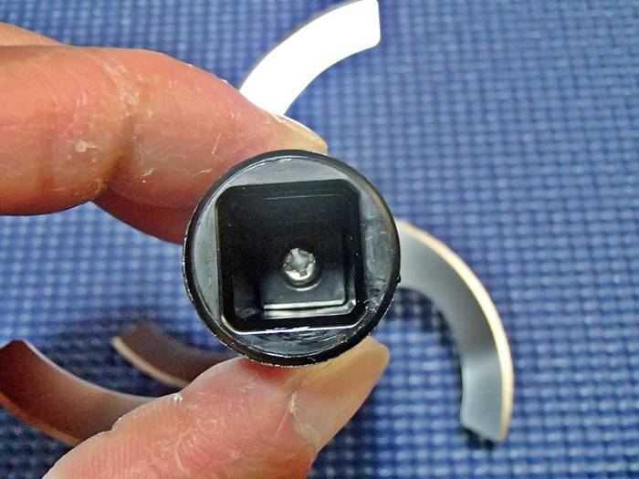 刃のパーツの軸を上から覗き込むと、ビスが一本見えます。